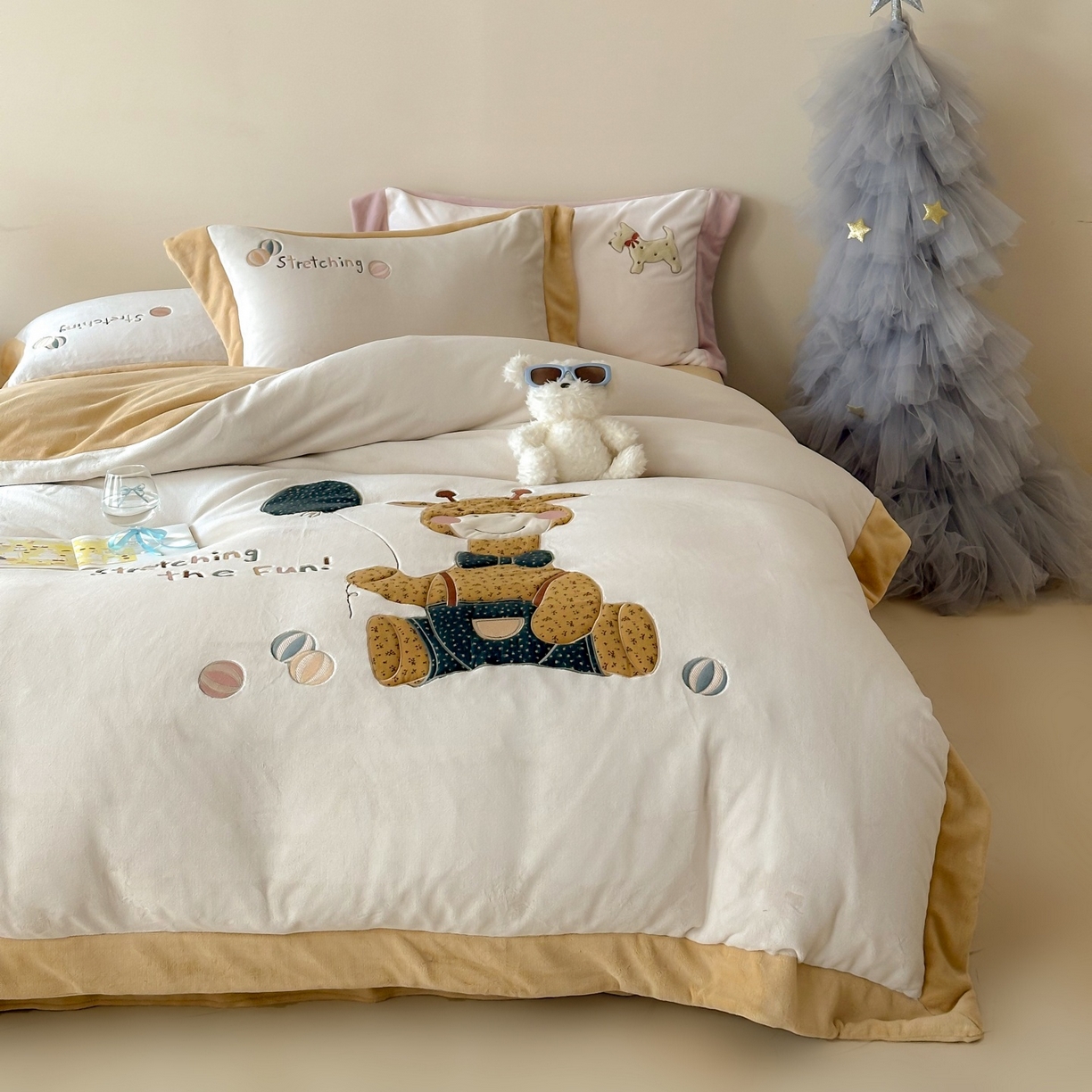- + 2022新款230g牛奶绒刺绣贴布绣四件套-可爱的你