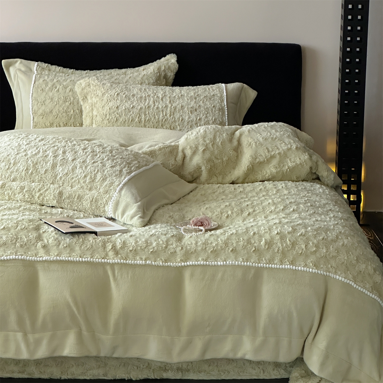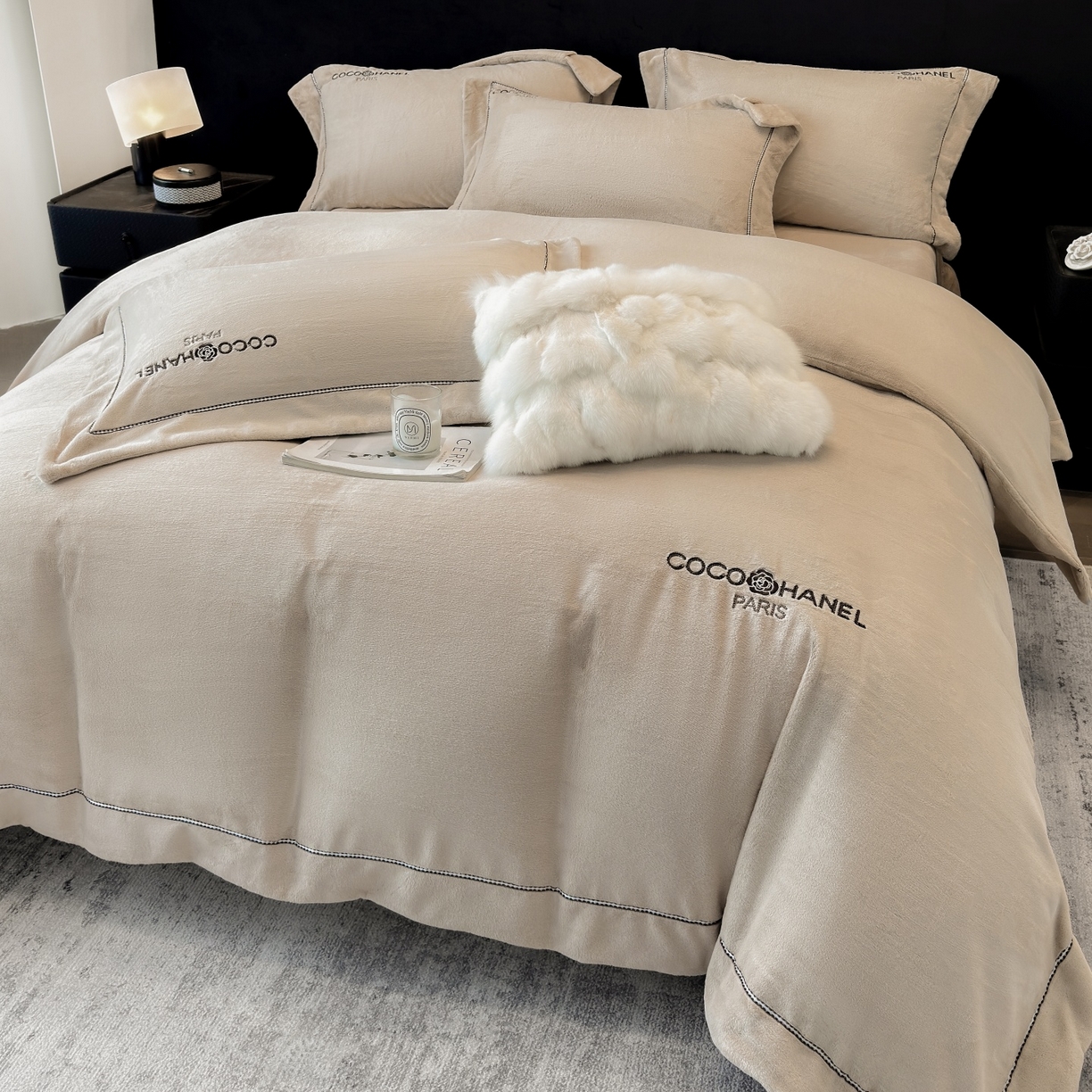 - + 2023新款高克重兔绒边带球球款四件套