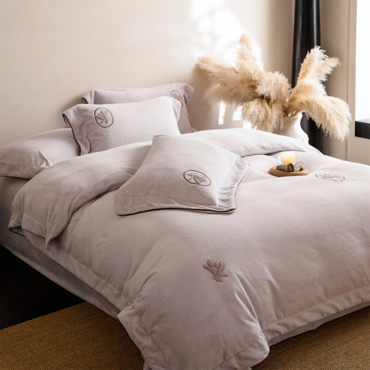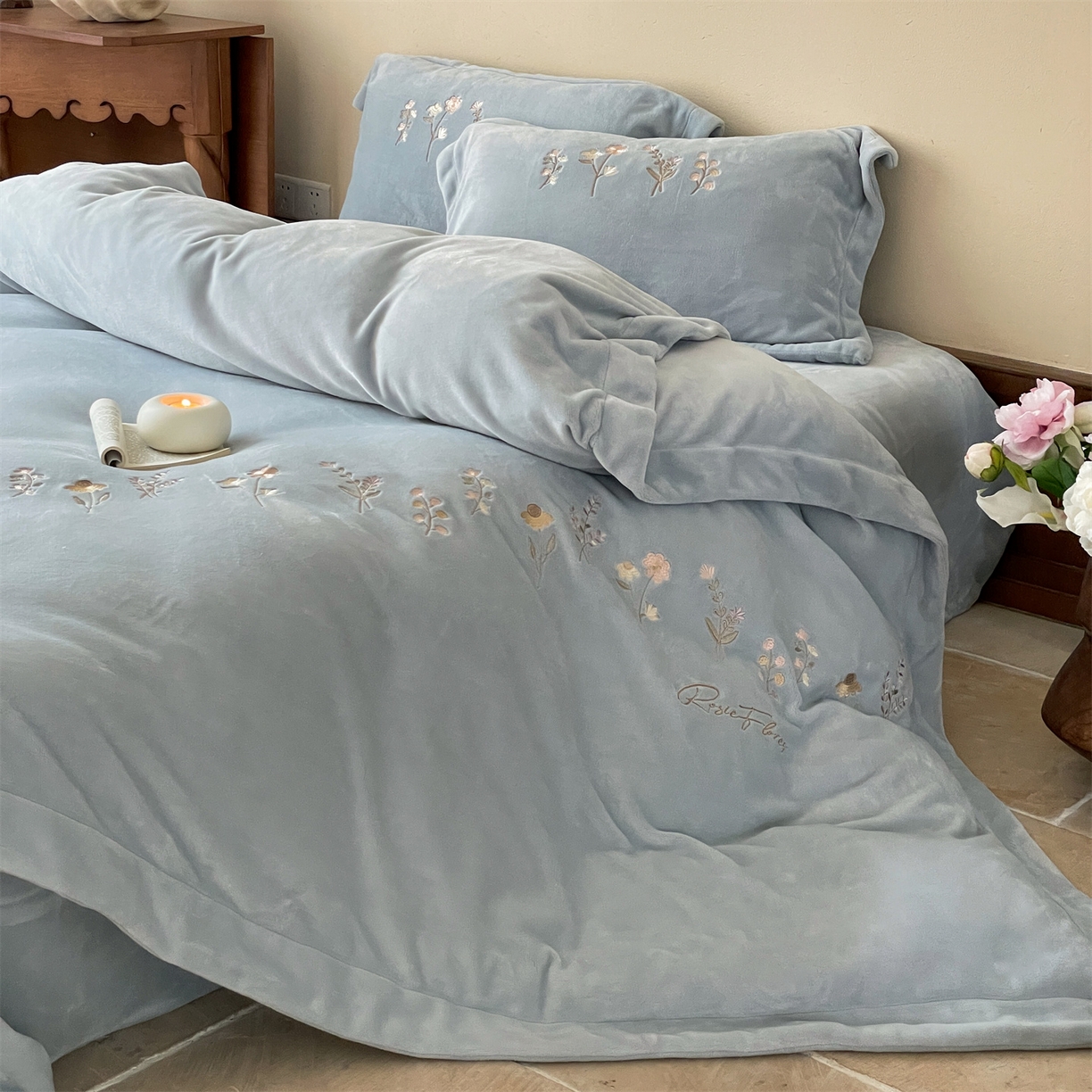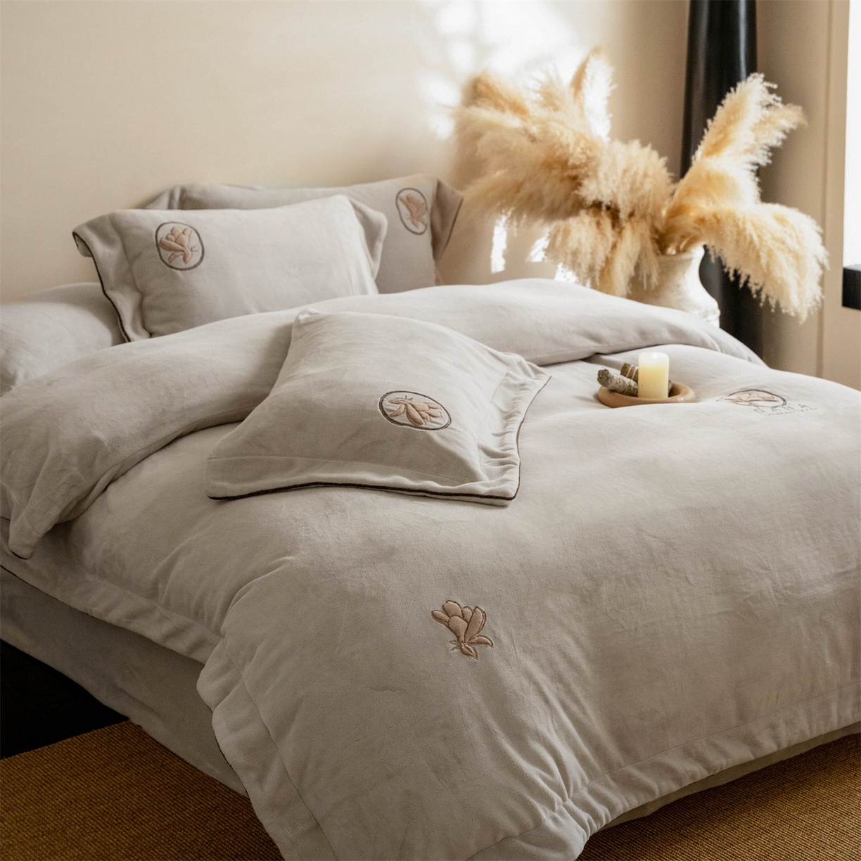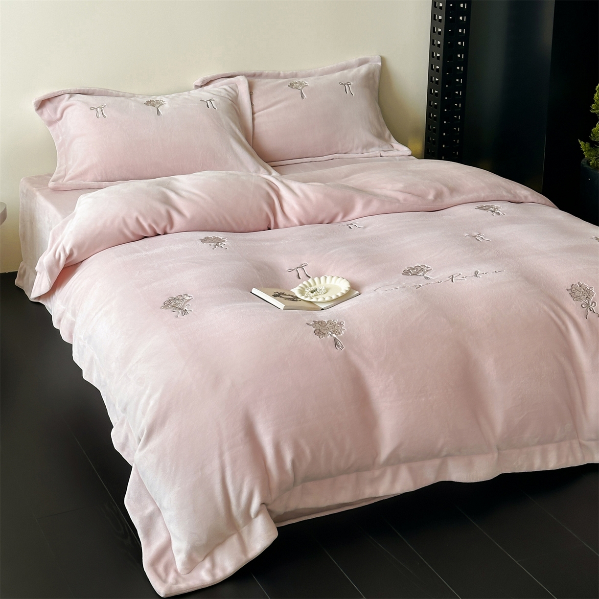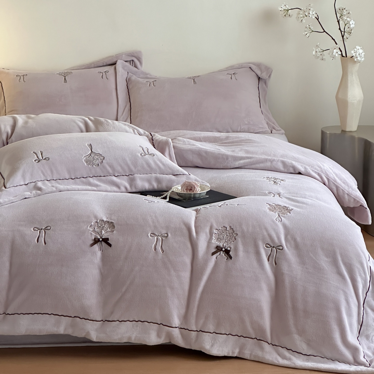 - + 2025新款简约牛奶绒绣花四件套-花韵