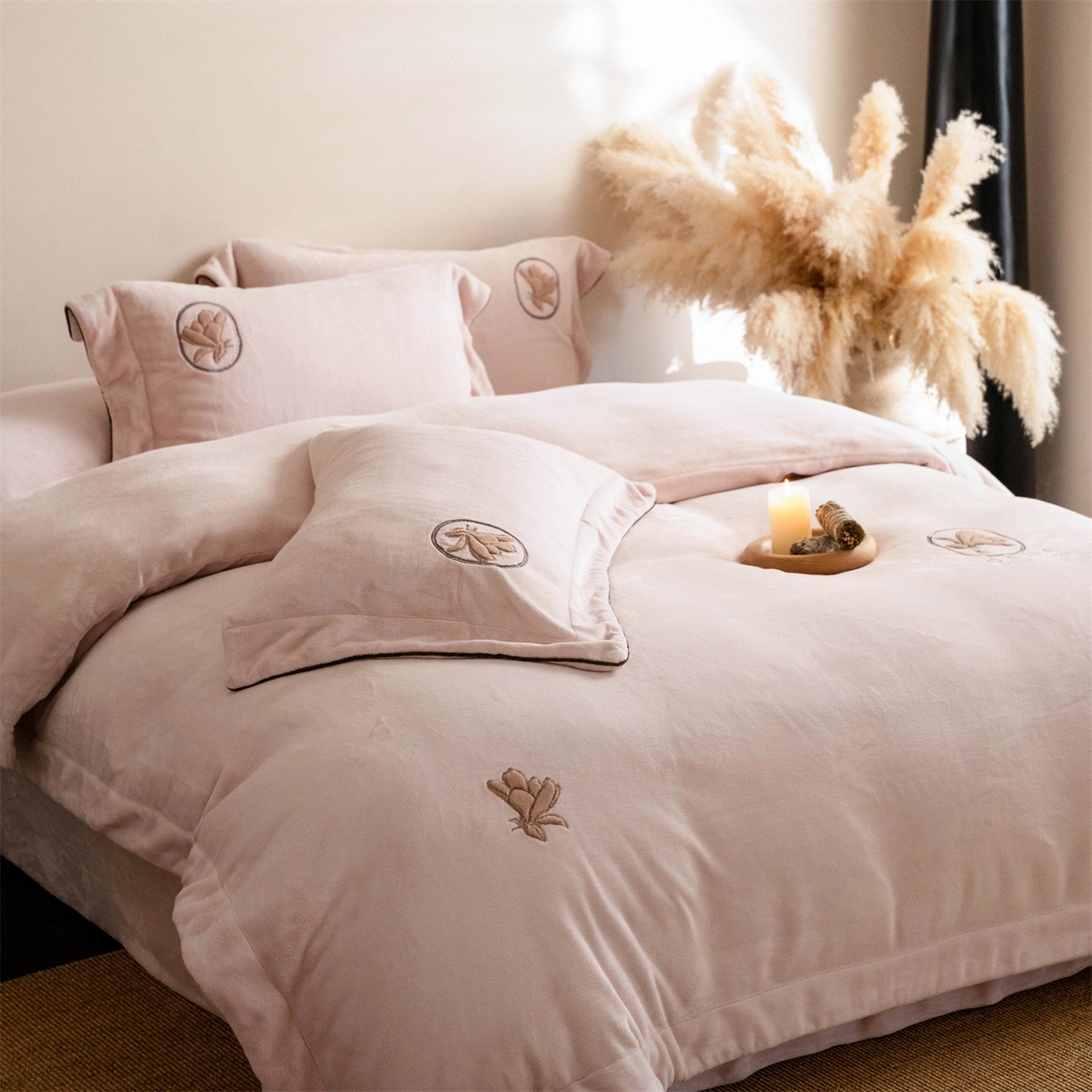 - + 2025新款220克牛奶绒绣花四件套-珊瑚