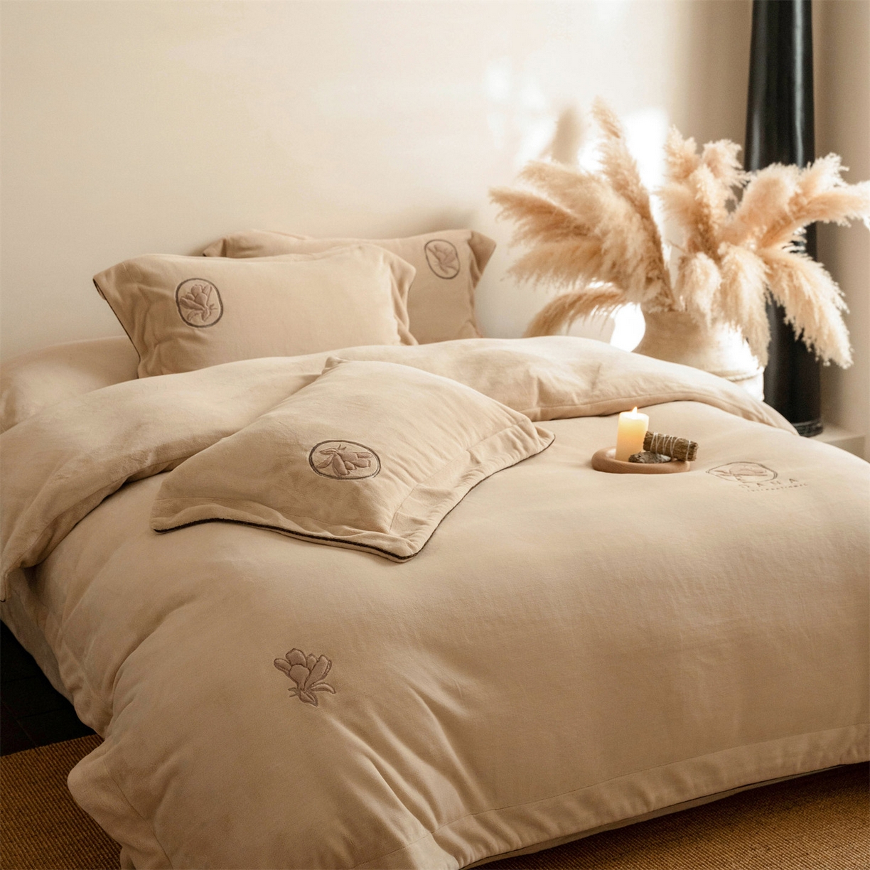 - + 2025新款简约240克奶肤绒刺绣四件套